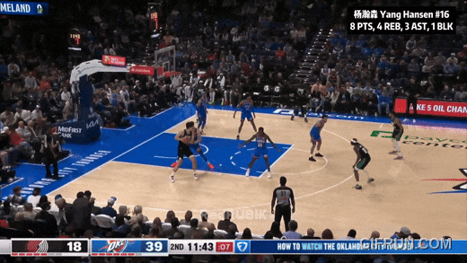 最后反正落后近40分了,开拓者让杨瀚森投压哨:三不沾。